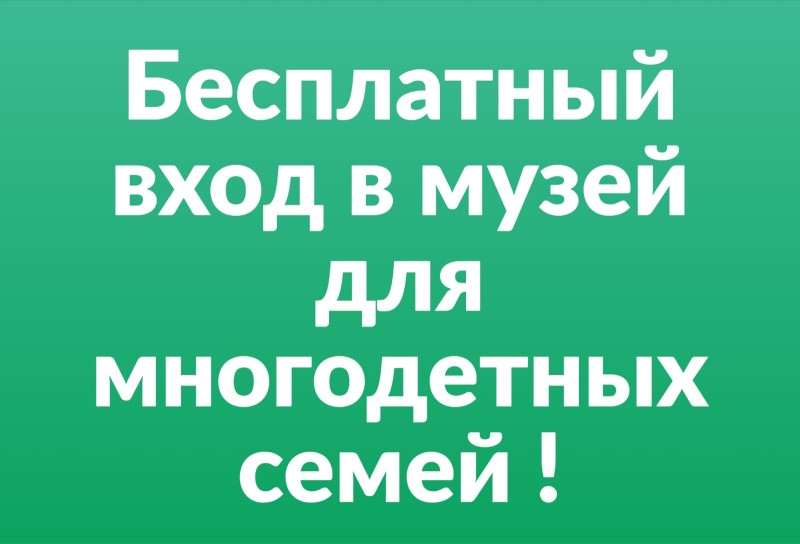 Посетить музей на льготных условиях вы можете в любой день месяца.Для подтверждения права на льготное посещение необходимо иметь при себе документ, подтверждающий статус многодетной семьи. Мы ждем ваши семьи в нашем музее!