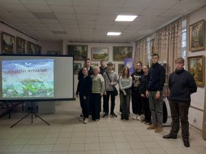 МКУК «ЯИКМ» продолжает проведение музейного урока «Зов белых журавлей». 17 октября 2025 года на нем присутствовали обучающиеся МБОУ средняя школа № 7 г. Ярцева.