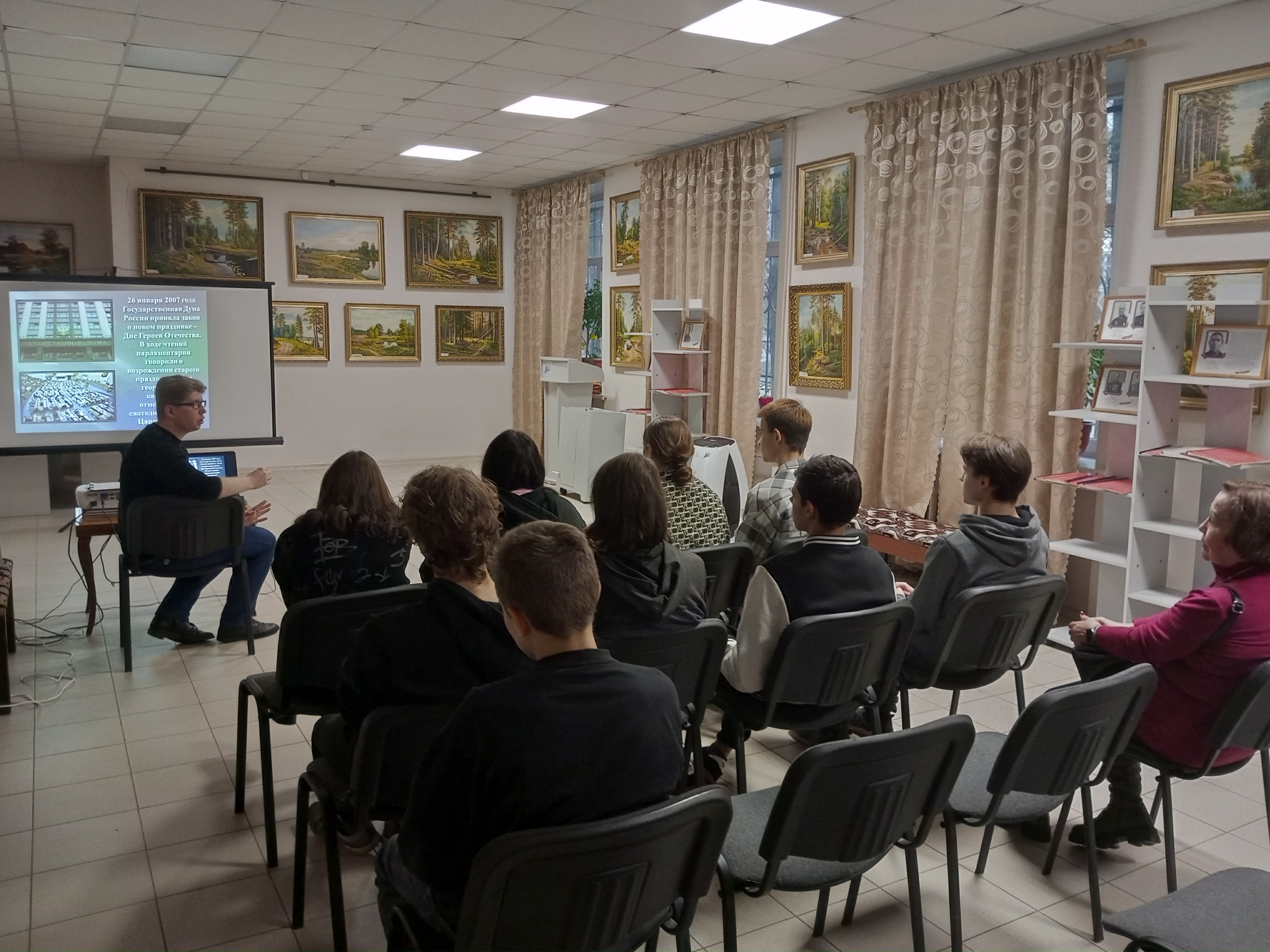 МКУК «ЯИКМ» продолжает проведение музейного урока « Герои Великой страны ». 11 декабря 2025 года на нем присутствовали обучающиеся 1 курса из СОГБПОУ «Ярцевский индустриальный техникум».В рамках музейного урока обучающиеся познакомились с уроженцами Ярцева - Героями Советского Союза, героями СВО, ярцевчанами – героями труда.
