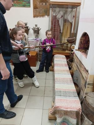 В ходе проведения экскурсии участники познакомились с традициями русского народа, с историей крестьянского быта; узнали о назначении предметов домашнего обихода, которые уже стали историей; о русских традициях, обрядах и давно забытом бытовом укладе. Каждый музейный экспонат ребята могли взять в руки, посмотреть, как он устроен, также должны были разгадать загадки и найти предметы-отгадки в музее. После тематического занятия была проведена обзорная экскурсия по музею.